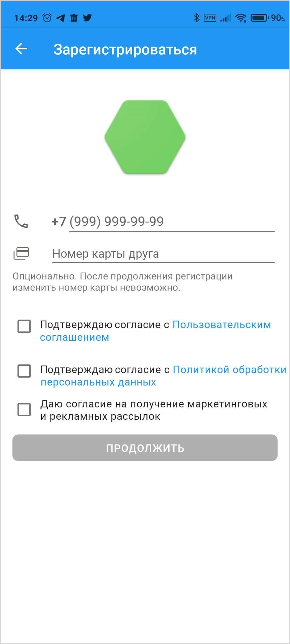 - Клиент подтверждает/не подтверждает своё согласие на получение маркетинговых рассылок и рассылок контента. Наличие и конфигурация соответствующего флага настраивается на этапе сборки или при обновлении Мобильного приложения.
