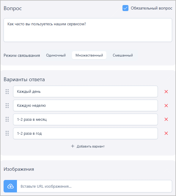 Для вопросов с одиночным выбором доступна настройка Режима связывания:
