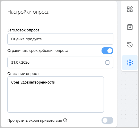 • Заголовок и Описание опроса.