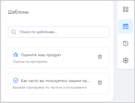 Сохранённые блоки отображаются на вкладке Шаблоны правой панели инструментов. Чтобы добавить сохранённый блок в опрос, перетащите его в основную область.