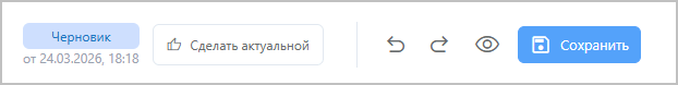 • Сделать актуальной — доступно для черновиков и архивных версий. Делает текущую версию актуальной.